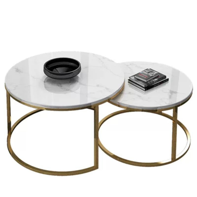 Modern living, maximized! This sleek Circular Coffee Table features a stunning marble top that adds a touch of luxury to your living room. But the magic doesn’t stop there! This ingenious table is nestable, allowing you to adjust the surface area for extra space or a more intimate gathering.