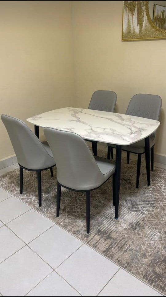 This stunning Four Seater Marble Dining Set ensemble combines the timeless elegance of marble with the comfort of microfiber, creating a captivating centerpiece for your dining room.
