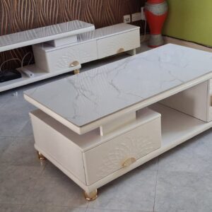 Marble-top coffee table paired with a matching TV stand — elegant design, strong structure, and a premium finish.