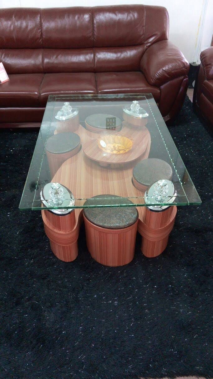 Elevate your living space with the stunning Modern Glass Coffee Table and Stool Set! This stylish and functional centerpiece becomes a focal point in your living room.