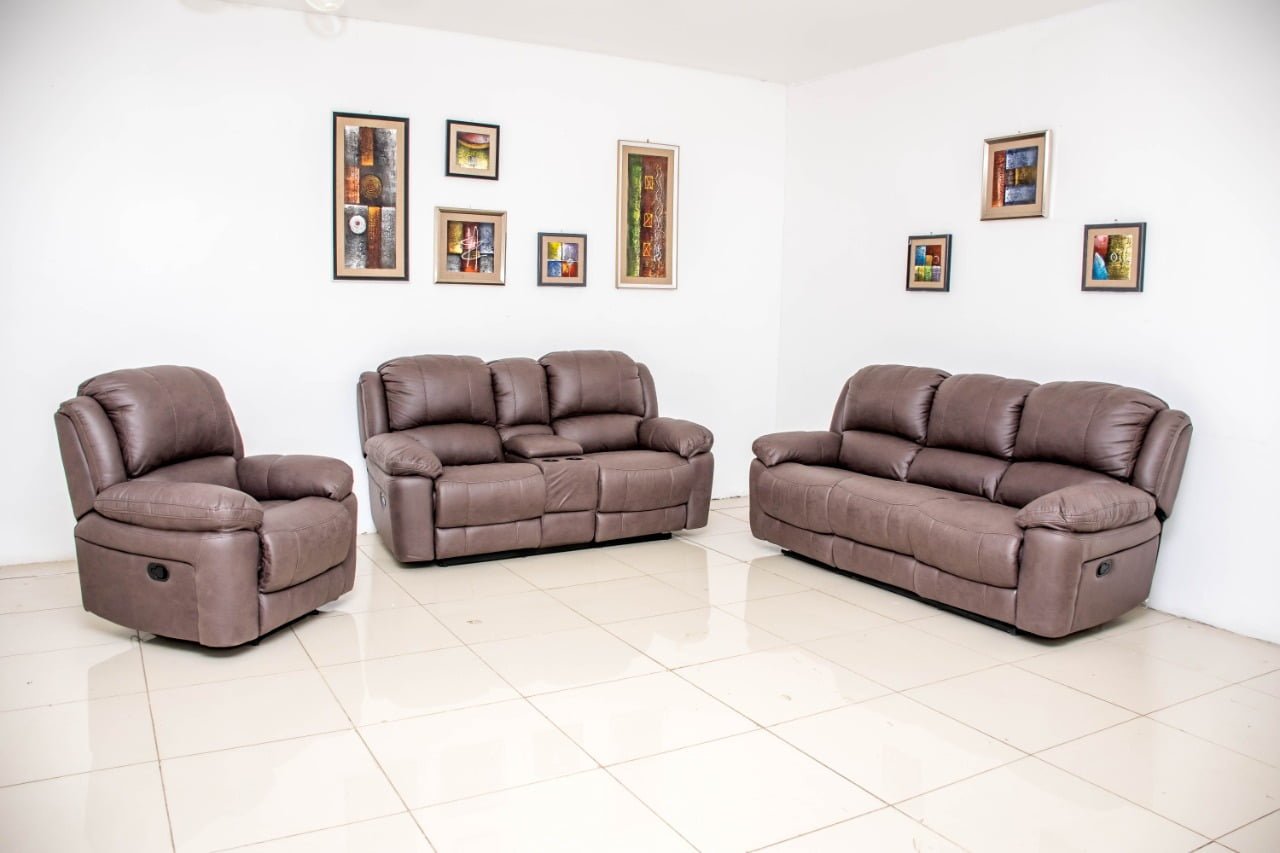 With the Reclining Sofa set, saddle up for luxurious comfort at a reasonable cost. This modern reclining sofa has chic features including a high back cushion and obscenely plush, thick pillow top armrests. The light cocoa-colored upholstery is incredibly neutral and luxurious, and it will go well with a limitless number of color combinations. For your extra comfort and convenience, the reclining loveseat has two cup holders.
